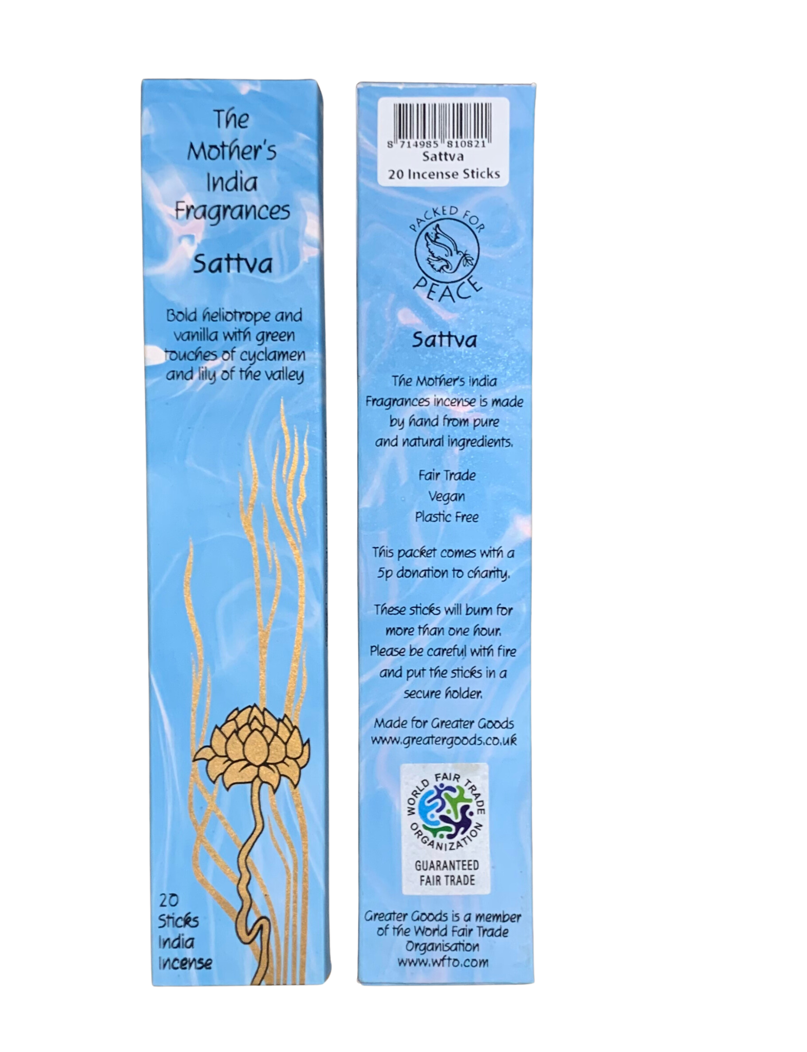 Mother's India Sattva Incense - Heliotrope, Vanilla & Lily of the Valley Blend (20 Sticks) Fair Trade